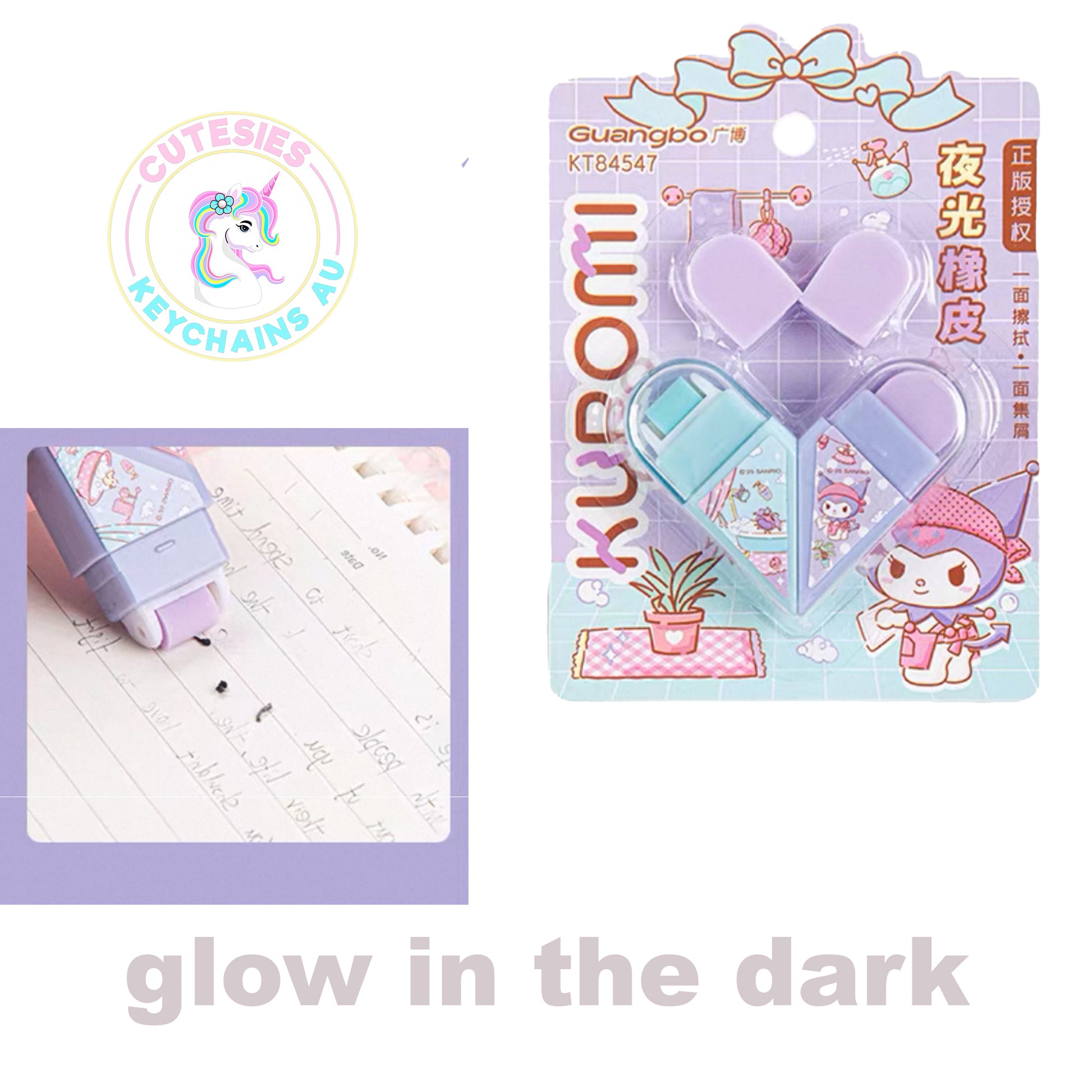 Light up your desk with these adorable glow-in-the-dark erasers featuring three unique designs! Each eraser includes magnetic connectors that snap together, making it simple to swap between styles or attach to your pencil case. Replacement erasers are included, so you'll always have a fresh one ready. Perfect for stationery lovers who want to add a fun, glowing touch to their collection. Mix and match with other light-up items from our store to create your ultimate cute desk setup!